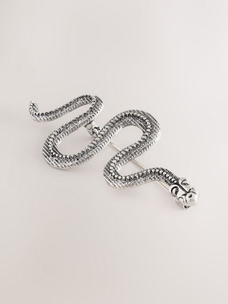 Silver Tone Snake Brooch