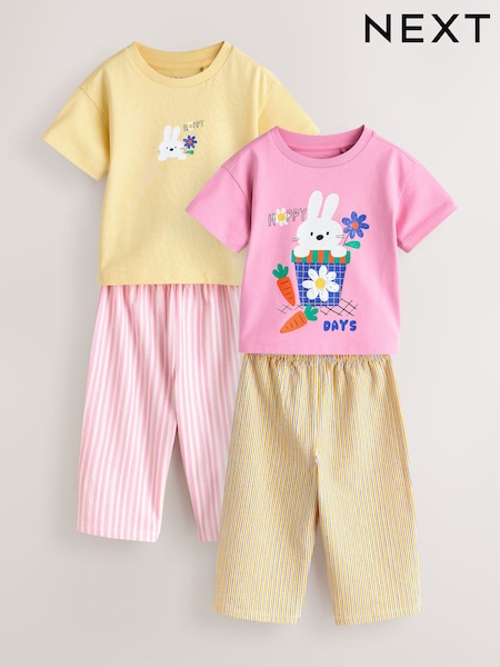 Pink/Yellow Bunny Wide Leg Pyjamas 2 Pack (9mths-12yrs)