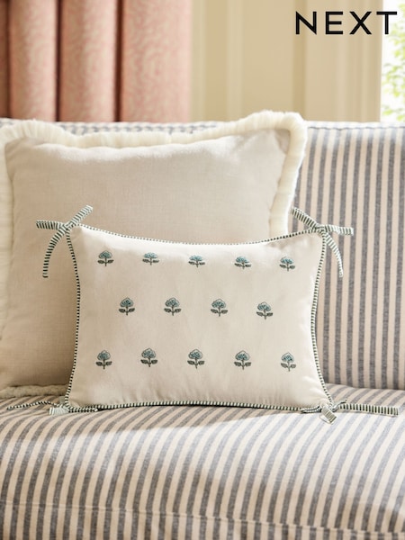 Wylder Blue House Of Bloom Celandine Floral Velvet Piped Cushion