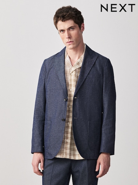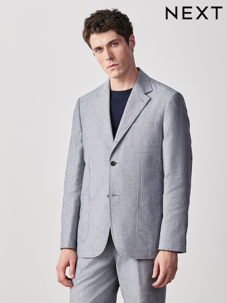 Blue Relaxed Fit Cotton Linen Blend Suit Blue Jacket