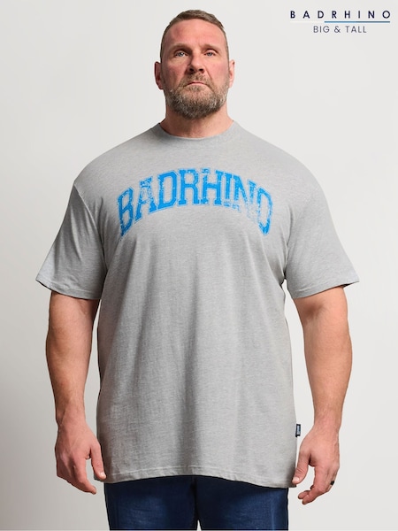 BadRhino Big & Tall Grey Distressed Graphic T-Shirt