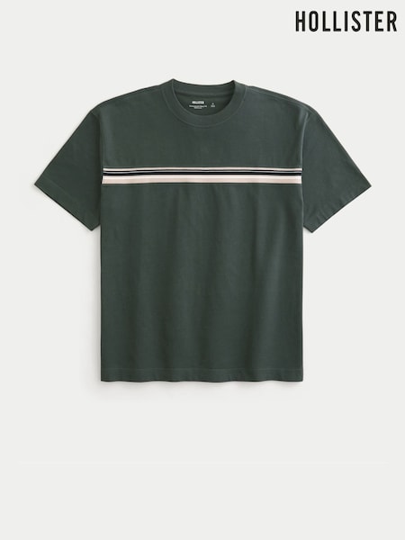 Hollister Green Boxy Heavyweight Striped Crew T-Shirt