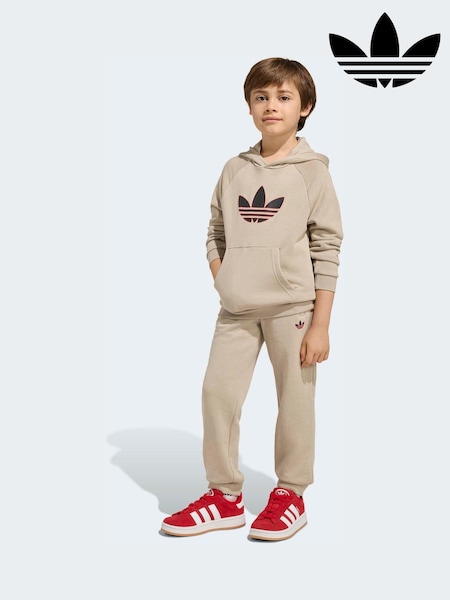 adidas originals Brown Trefoil Hoodie and Jogger Little Kids Set