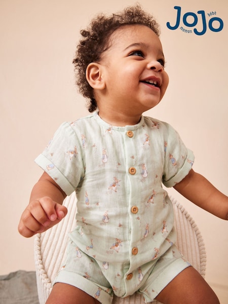 JoJo Maman Bébé Pink Flopsy Embroidered Stripe Romper