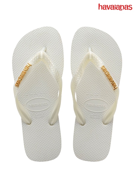 Havaianas White Top Logo Metallic Flip Flops
