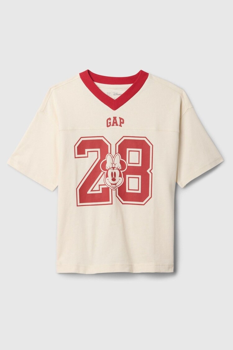Soft cotton jersey T-shirt. Contrast V-neck. Short sleeves. Varsity-style numbers with assorted Disney character graphics and Gap logo at front. Fit: Oversized. Fits loose on the body. For a Classic fit go down one to two sizes. Hits at the hip Soft cotton jersey T-shirt Contrast V-neck Short sleeves Machine washable. 100% Cotton.