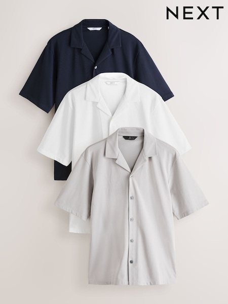 Tumši zila/pelēka/balta - Short Sleeve Revere Collar Jersey Shirts 3 Pack