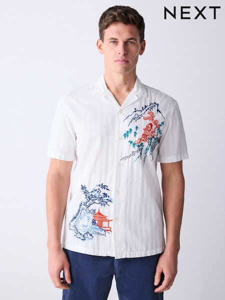 Zaļš - Teksturēts, izšūts japāņu raksta īsroku krekls