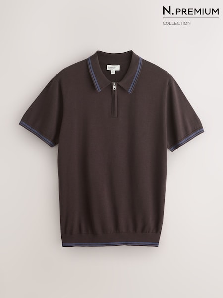 Šokolādes brūns - Slim Fit N. Premium Tipped Short Sleeve Quarter Zip Knit Polo Shirt